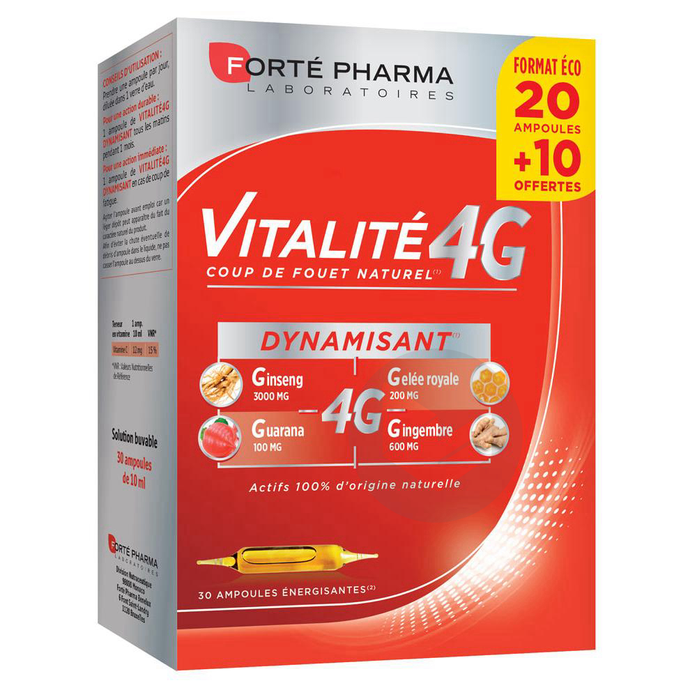 Le complexe 4G c'est l'alliance entre le guarana, le ginseng, le gingembre et la gelée royale qui vous apporte un véritable coup de boost !