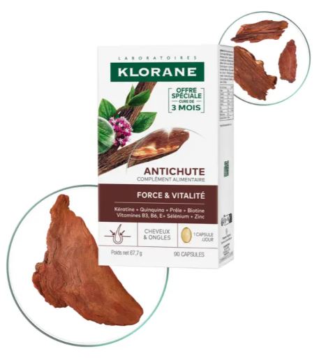 Riche en micronutriments et contenant de la Kératine et des extraits de prêle des champs et quinquina, Klorane Antichute agit de l’intérieur pour prévenir la chute de cheveux et aider à maintenir des cheveux forts et en bonne santé